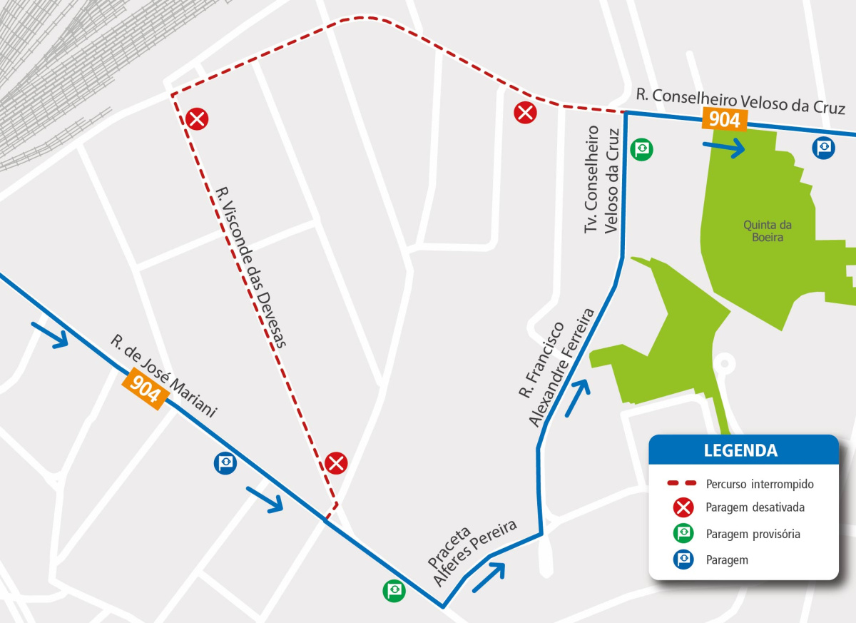 On March 20th, between 8:00 AM and 1:00 PM , due to roadworks on Rua Visconde das Devesas (VN Gaia) , the vehicles on this line will have the following route change: