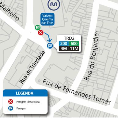 , verificar-se-á a seguinte alteração provisória nos locais de paragem, na Trindade (Porto):