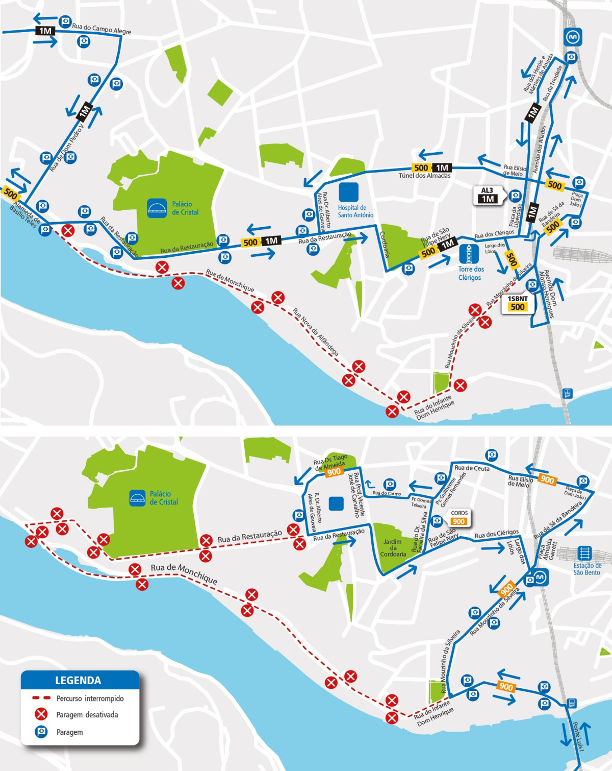 No dia 15 de abril, entre as 04h30 e as 07h10, devido à realização de filmagens no Viaduto do Cais das Pedras (Porto), as viaturas destas linhas irão efetuar as seguintes alterações de percurso: