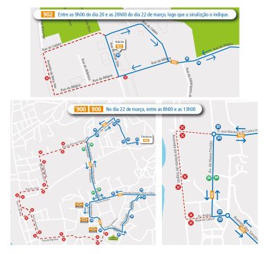 Entre os dias 20 e 22 de março, de acordo com os horários indicados nos mapas, devido à realização da Meia Maraotona de Gaia, as viaturas destas linhas irão efetuar as seguintes alterações de percurso: