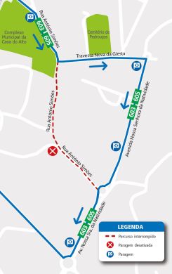 R. António Simões, Tr. Nova da Giesta, Av. Nossa Senhora da Natividade e percurso normal.