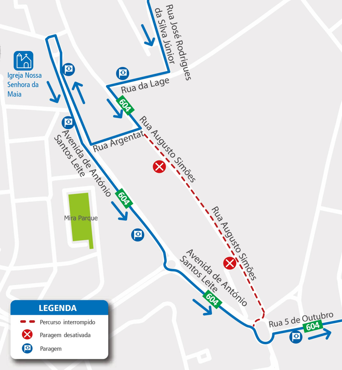 No dia 15 de abril, logo que a sinalização o indique, devido a obras na Rua Augusto Simões (Maia), as viaturas destas linhas efetuar a seguinte alteração de percurso:
