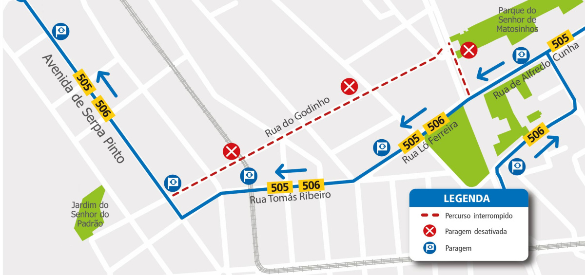 Entre os dias 16 e 18 de março, das 08h00 e as 17h00, devido a obras na Rua do Godinho (Matosinhos), as viaturas destas linhas irão efetuar a seguinte alteração de percurso: