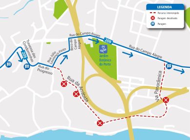No dia 28 de março, entre as 8h00 e as 17h00, devido a obras na Via Panorâmica (Porto), as viaturas desta linha irão efetuar a seguinte alteração de percurso: